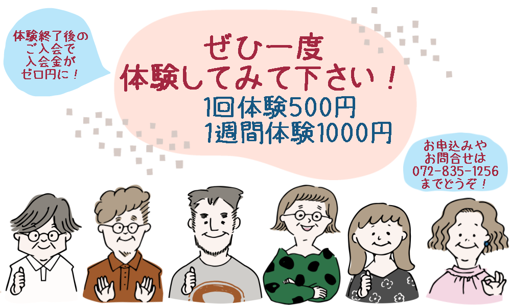 ●1週間体験:1週間の間に6講座まで体験できます。(1,000円)
